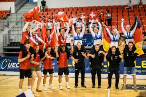 A hivatalos nyitóünnepséget követően a svájci és a német kvartettek csaptak össze az Eb első aranyérméért, melyet végül a előbbi művészi kerékpáros sor szerzett meg, név szerint Tijem Karatas, Annika Rosenbach, Stella Rosenbach és Milena Schwarz.
