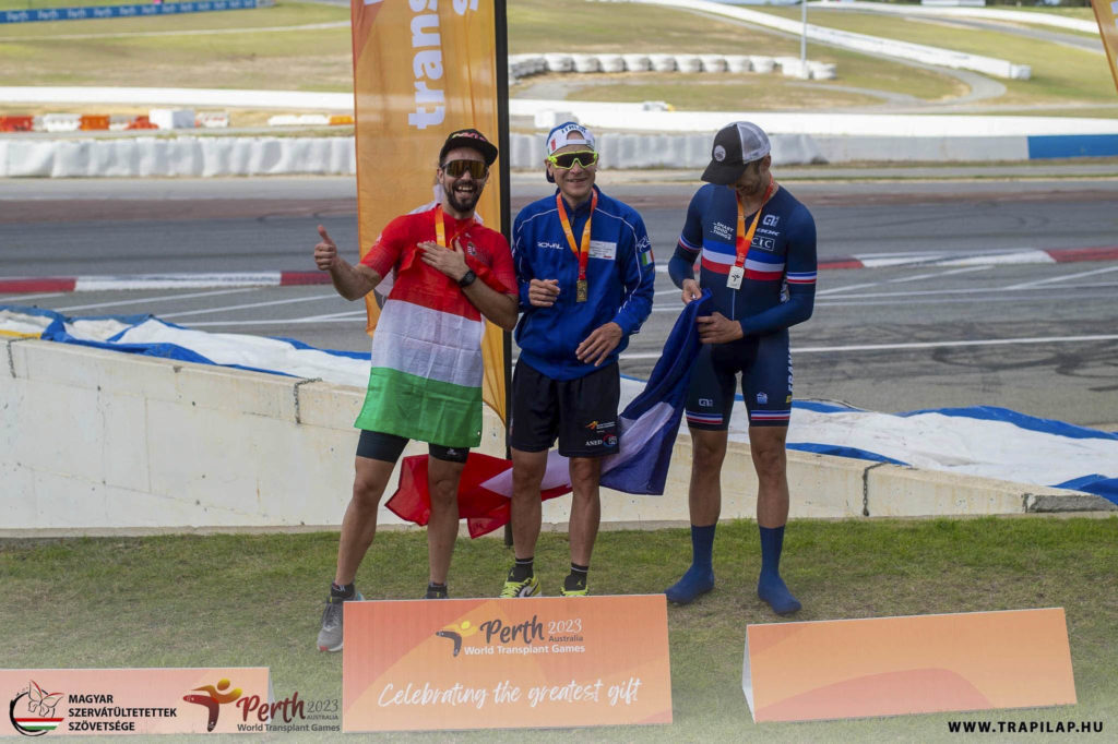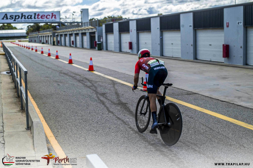 Kiemelte: a Szervátültetettek Világjátékán, amely számukra gyakorlatilag a világbajnokságot jelenti, 45 ország képviseltette magát közel 2000 résztvevővel. Tízéves bontásban vannak a kategóriák – mint mondta, így tovább motiváltak maradnak a versenyszerű sportolásra a szervátültetettek -, ő a 30-39 esztendősök között szerezte két érmét. Kerékpárban ezúttal nem sikerült diadalmaskodnia, később atlétikai számokban viszont megszerezte 11. és 12. vb-elsőségét.