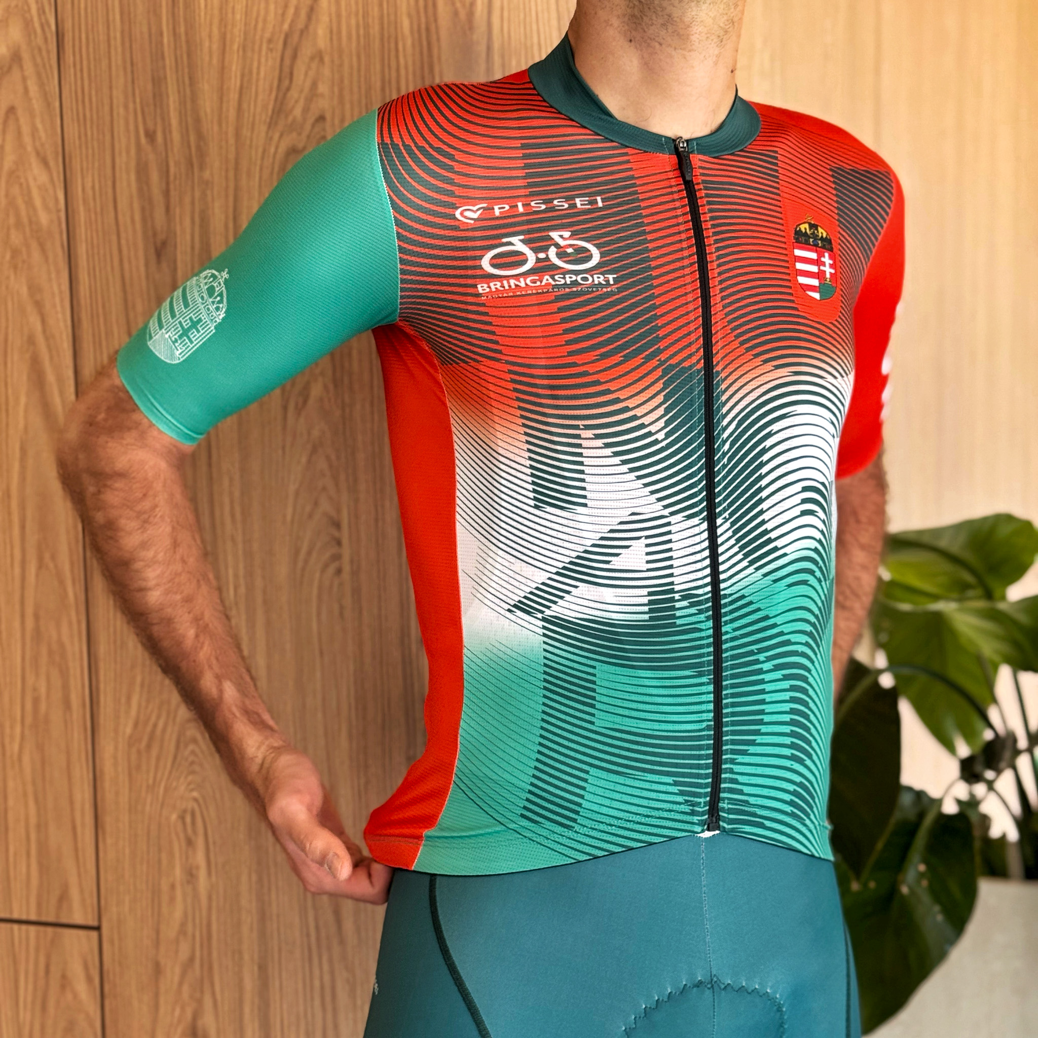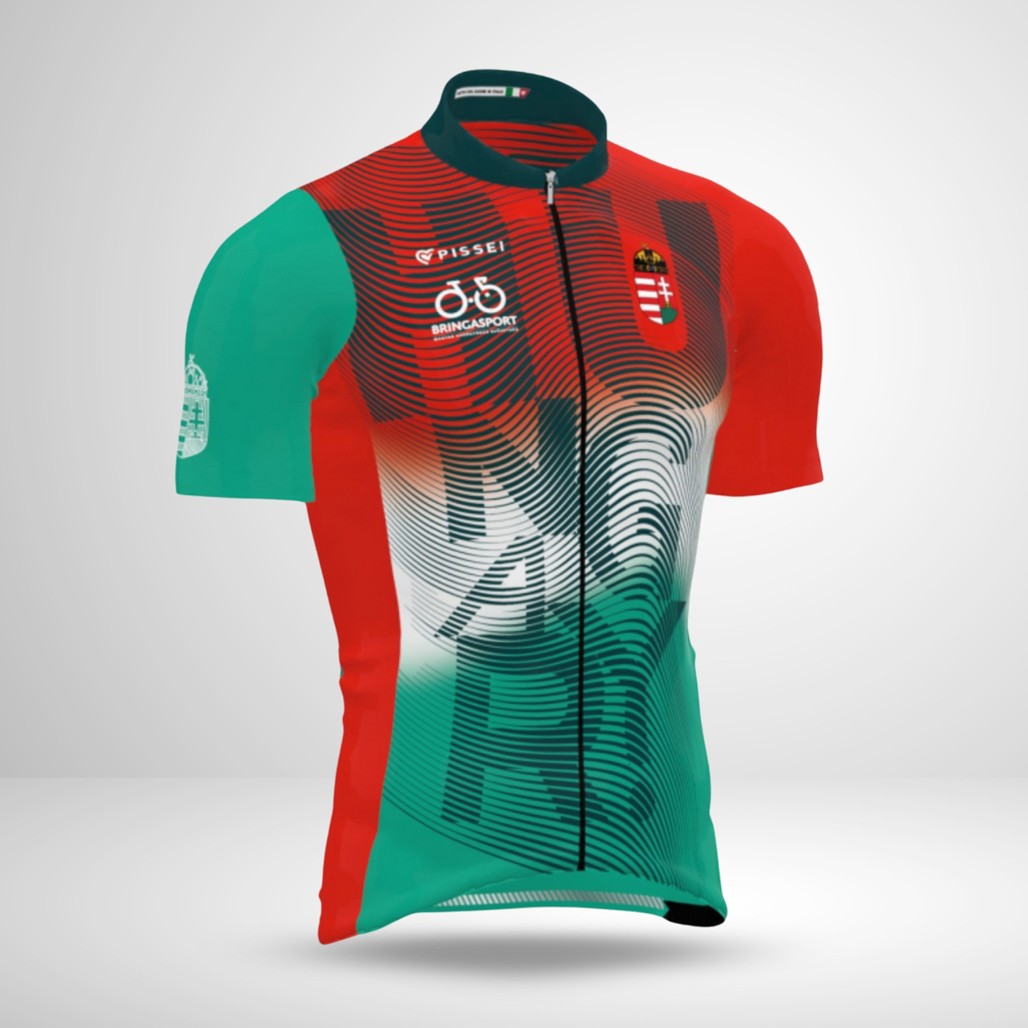 A magyar kerékpár-válogatott hivatalos edzőmeze, amely a kényelmet és a nemzeti büszkeséget ötvözi. Az olasz minőség és a piros–fehér–zöld dizájn garantálja, hogy minden edzés és túra stílusos élmény legyen. A könnyű, rugalmas anyag tökéletes szellőzést biztosít, a kényelmes szabás pedig ideális mindennapi használatra és hosszabb távokra egyaránt.
