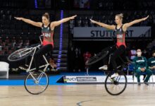 Páros indulók értékelése: a gyakorlat első felében mindkét versenyző saját kerékpárján mutat be elemeket egymással szinkronban. A második felében egy kerékpáron végeznek különböző elemeket. Itt nagyon kell figyelni a gördülékeny váltásokra, hogy ne fussanak ki az időből.